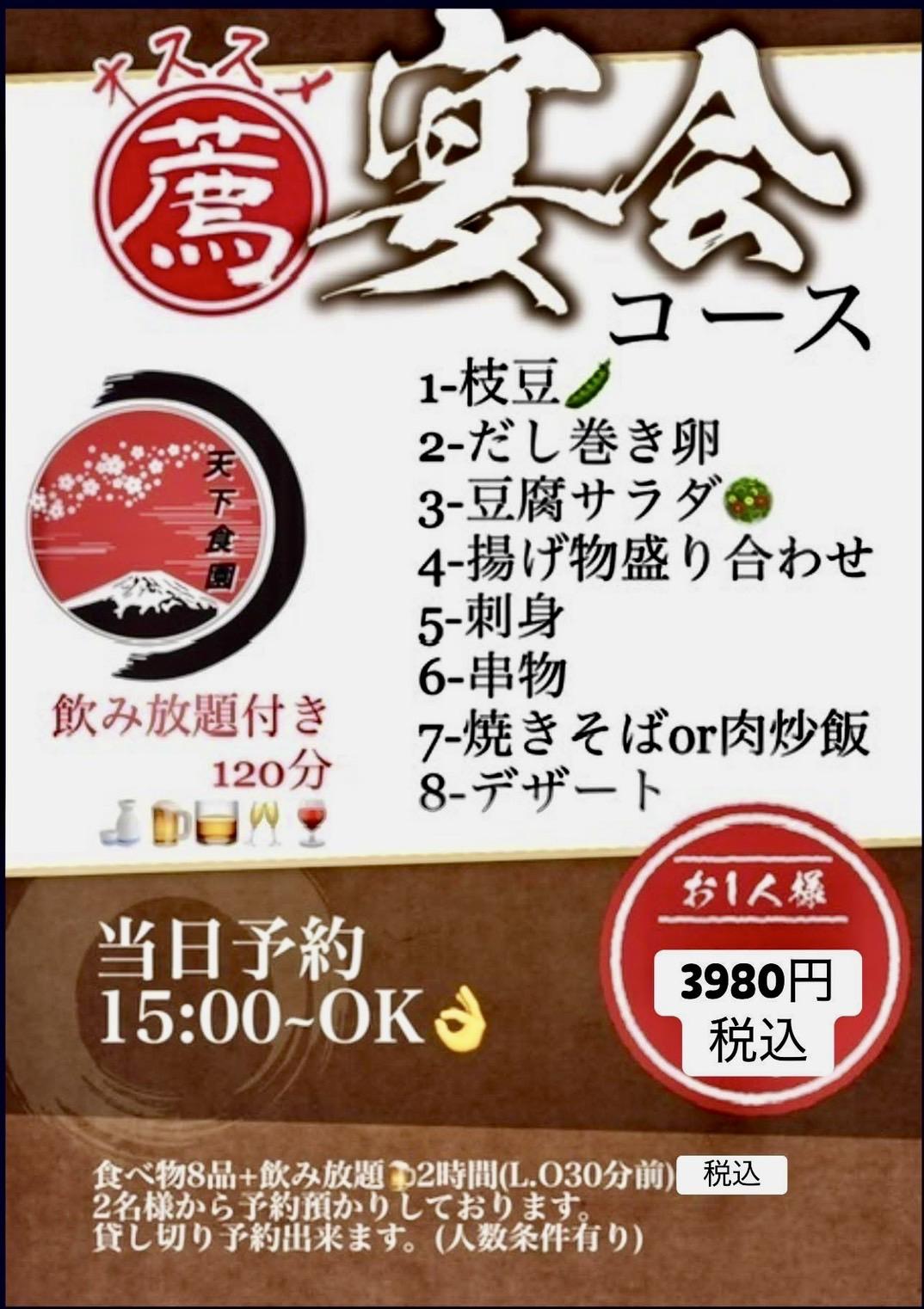 2月13日から新大塚駅から徒歩1分、モダン居酒屋レストラン「天下食園」をニューオープン致しました。皆様のご来店を心よりお待ちしております。